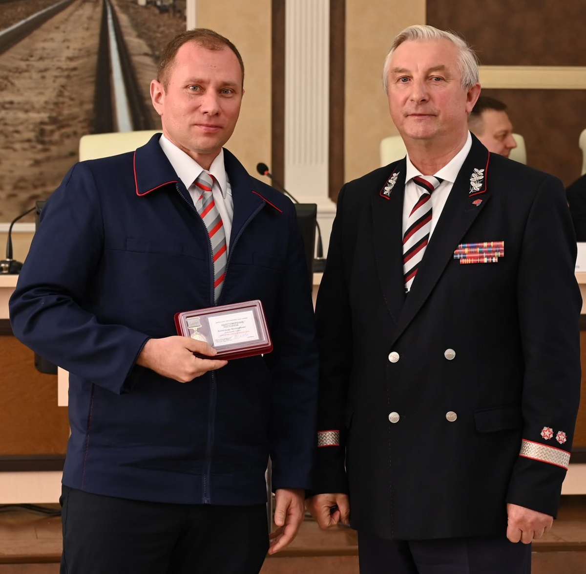 ⏩ Инспектор по приёмке локомотивов Красноярской дирекции тяги Александр Постников (на фото слева) получил знак «Лучший наставник дирекции
