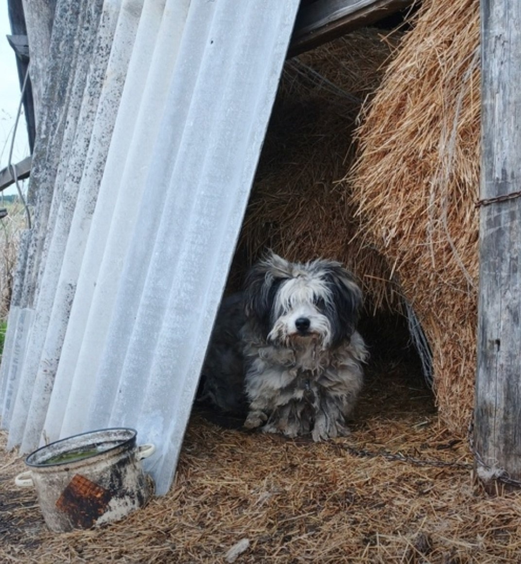 Срочно‼️Помогаем информационно ❗ Он из Далматовского района (село Затеченское ) Временно живет в стоге сена. Боимся, что его выбросят, как двух предыдущих в лес. Я мужчину попросила его не трогать, пообещала найти ему дом.🥺 Сейчас песель на цепи, в пустом доме, без хозяев. Собака много лет жила на привязи у цыган. Они уехали, собаку оставили, ее подкармливают, но похоже очень редко. Отпустить с цепи я ее не могу, он очень старенький и слеповат, не дай бог что то случится. Мой номер 89003787561