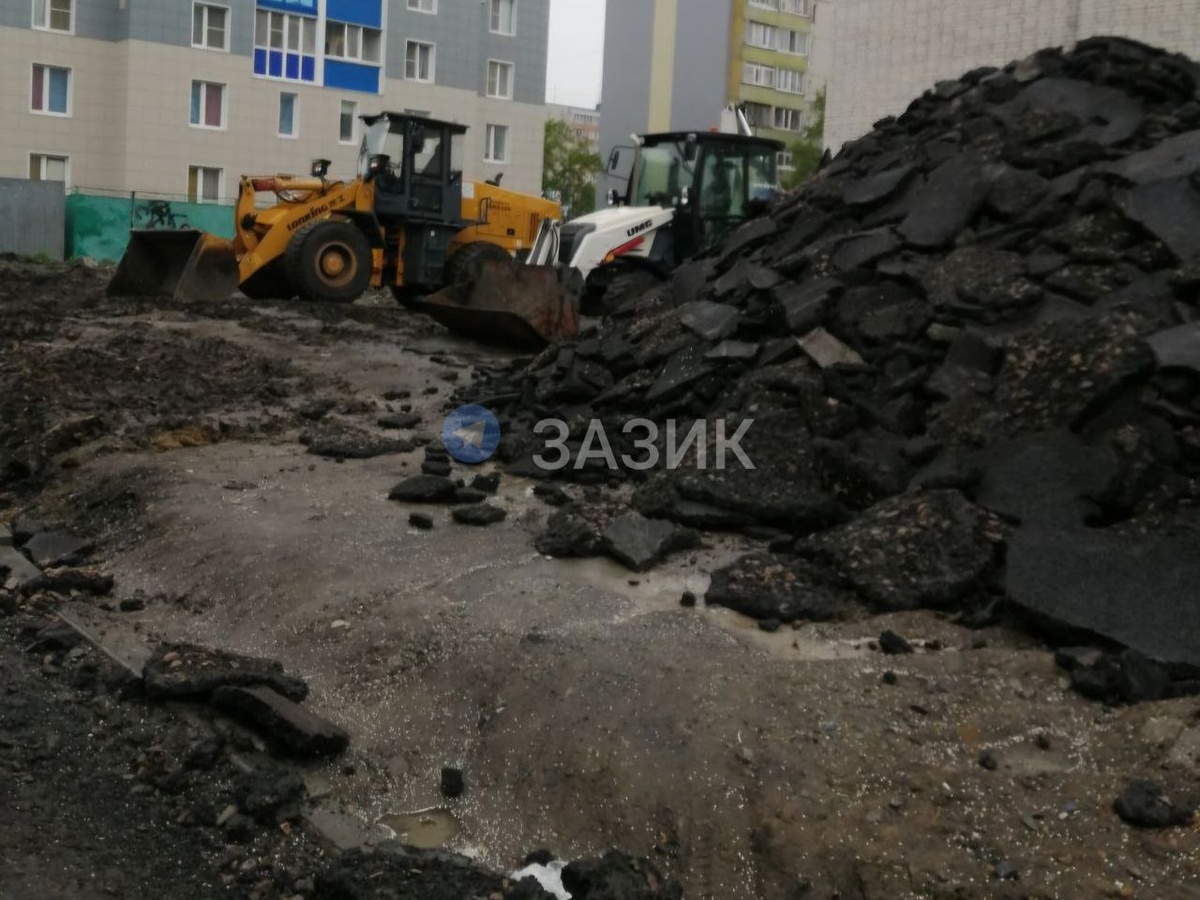 😠В Заозёрном перекладывают асфальт, уложенный чуть более полугода назад