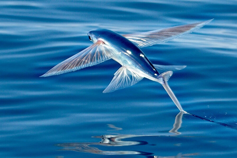 Летучие рыбы — живые планеры. Их грудные плавники, достигающие 80% длины тела, работают как крылья. У четырехкрылых видов (Cypselurus) в полете задействованы и брюшные плавники. Серповидный хвост разгоняет рыбу до 60 км/ч перед прыжком. Рекорд — 400 метров за 45 секунд! Механика полета поражает: рыба выпрыгивает под углом 45°, расправляет плавники и скользит над водой, используя «эффект земли» (полет в 5–10 см от поверхности для экономии энергии). Способность летать — результат миллионов лет борьбы за жизнь. Палеонтологи нашли окаменелости возрастом 66 млн лет. Предки рыб спасались от тунцов и дельфинов, а особи с удлиненными плавниками выживали чаще. Сегодня их главные враги — те же тунцы, дельфины и птицы (фрегаты атакуют со скоростью 150 км/ч!).