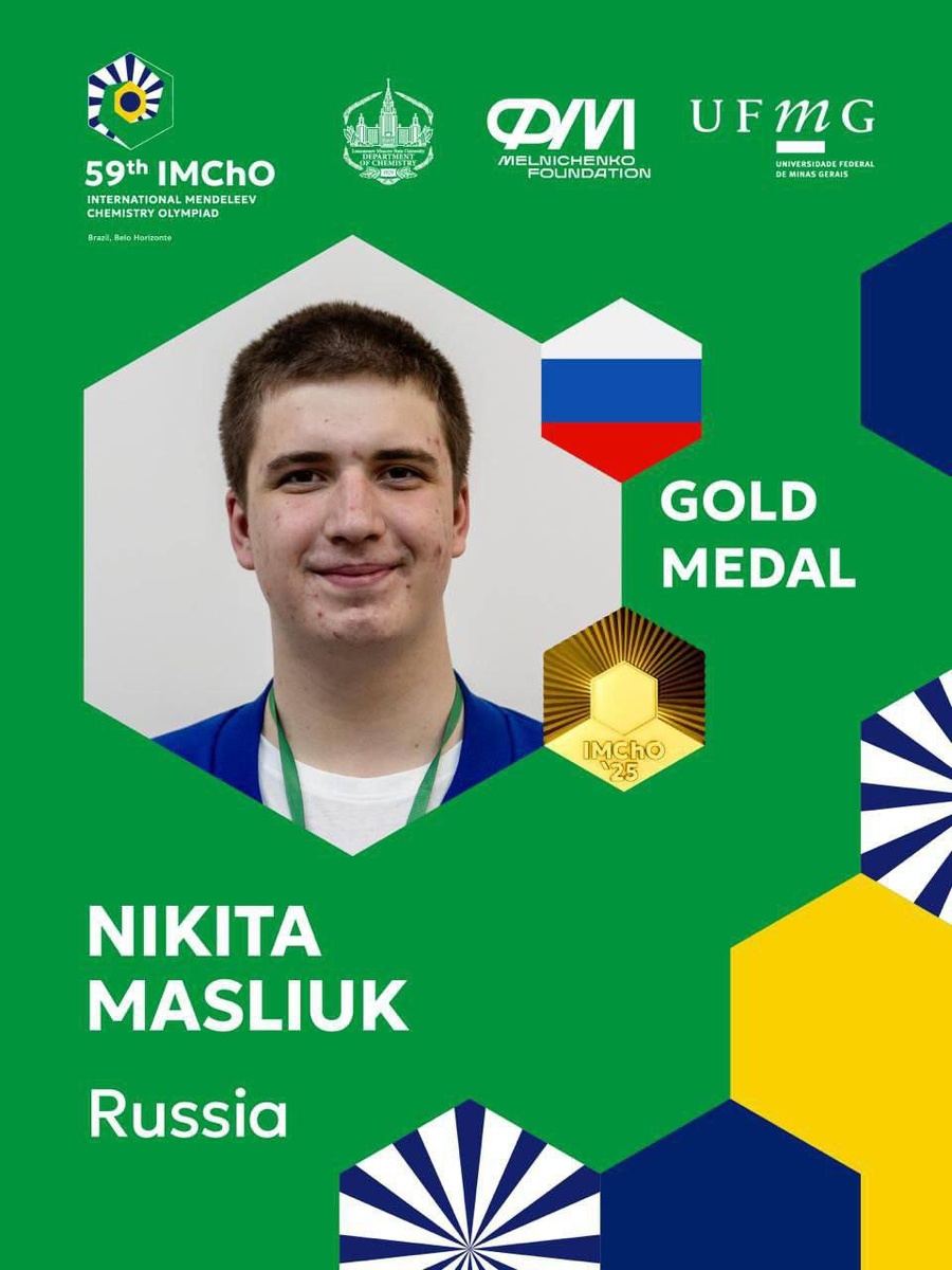 Одиннадцатиклассник краснодарской гимназии № 92 Никита Маслюк завоевал золотую медаль на международной Менделеевской олимпиаде по химии в Бразилии.