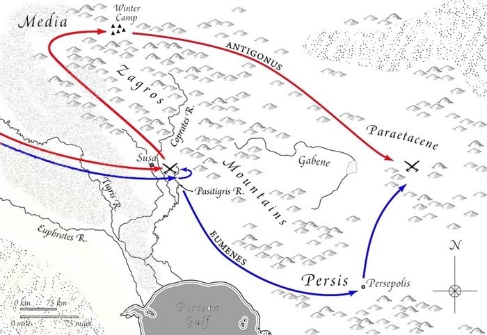 Летом 318 года (здесь и далее все даты до новой эры) сатрап Каппадокии Эвмен предпринял попытку вернуться с войском в Македонию, чтобы помочь царице Олимпиаде и регенту империи Полисперхонту в их борьбе против диадохов-сепаратистов, а также взять на себя воспитание малолетнего сына Александра Македонского. Победа Антигона над флотом Полисперхонта при Византии исключила возможность возвращения Эвмена в Македонию морским путем из Финикии, а движение на Запад по суше кардийскому греку блокировала армия Антигона. В бурных обсуждениях на историческом форуме темы второй войны диадохов автор одного комментария упрекнул за проявленную нерешительность Эвмена, который после поражения флота отступил на Восток и не оказал своевременной поддержки Олимпиаде и Полисперхонту в войне с мятежным военачальником Кассандром. По мнению автора комментария проявленная Эвменом трусость привела к гибели матери Александра Македонского. Любой исторический форум является местом для дискуссии и изложенная в нем инф