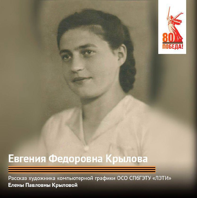 #ЛицаПобеды 🕊️Никто не сможет рассказать о годах войны лучше тех, кто на себе пережил все удары судьбы этого периода. Так, художник компьютерной графики ОСО СПбГЭТУ «ЛЭТИ» Елена Павловна Крылова в истории о своей семье, сражавшаяся в оккупированном городе с врагом в качестве партизан, приводит рассказ мамы, Евгении Федоровны Крыловой: «Оккупация для нашей семьи и подобных семей была тяжелым испытанием. Нас преследовали как партизанскую семью. В 1942 году я (мне было 14 лет) и брат Ваня (17 лет) стали подпольщиками. Мы давали клятву Ленинградских партизан: «Презирая опасность и смерть — клянусь всеми силами, всеми своим уменьем и помыслами, беззаветно и мужественно помогать Красной армии освободить город Ленина от вражеской блокады, очистить все города и села Ленинградской области от немецких захватчиков». Читать полностью 🎗️ #НаучныйПолк80 #ПодвигЖенщинПобеды