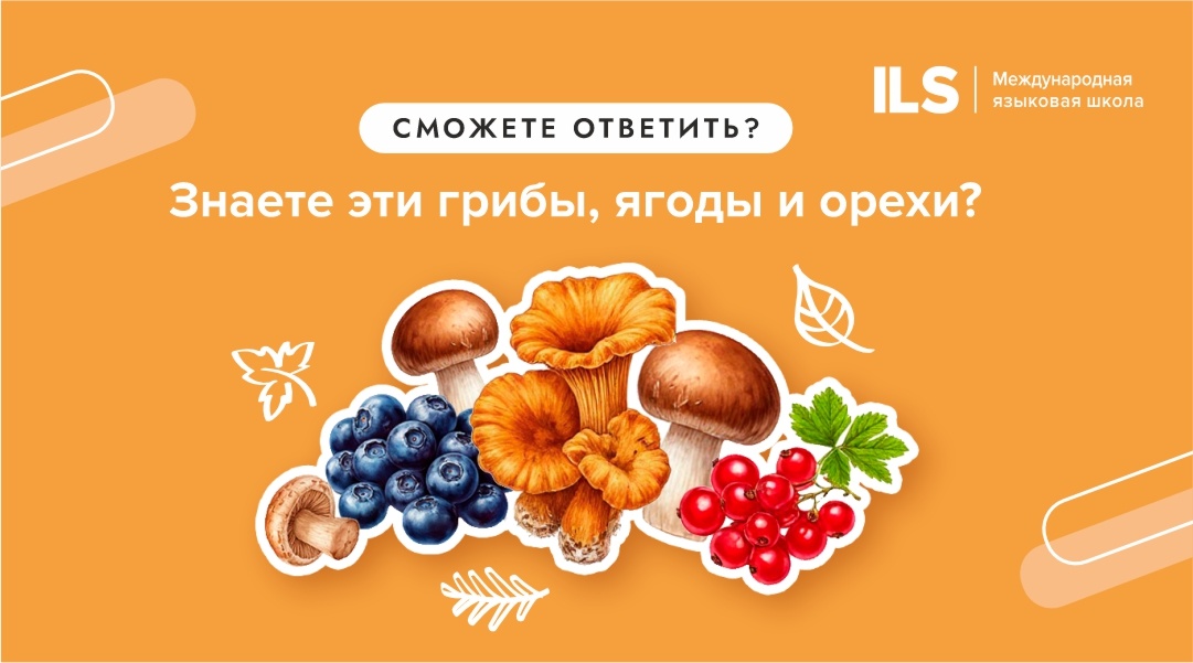 Лето уже на пороге, а значит, совсем скоро наступит время для любимых ягод, орехов и грибов. Лес, сад и огород вновь наполнятся свежими дарами природы, и мы с удовольствием будем наслаждаться этим богатством. Но как на английском языке называются эти вкусности? Преподаватели школы ILS подготовили для вас тест. В этом тесте вы проверите не только свои знания, но и расширите словарный запас. Готовы испытать свою память и узнать, как на английском звучат самые привычные для нас лесные и садовые угощения?