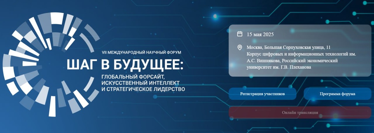 15 мая выступаю модератором одной из секций на VII Международном научном форуме «Шаг в будущее: глобальный форсайт, искусственный интеллект