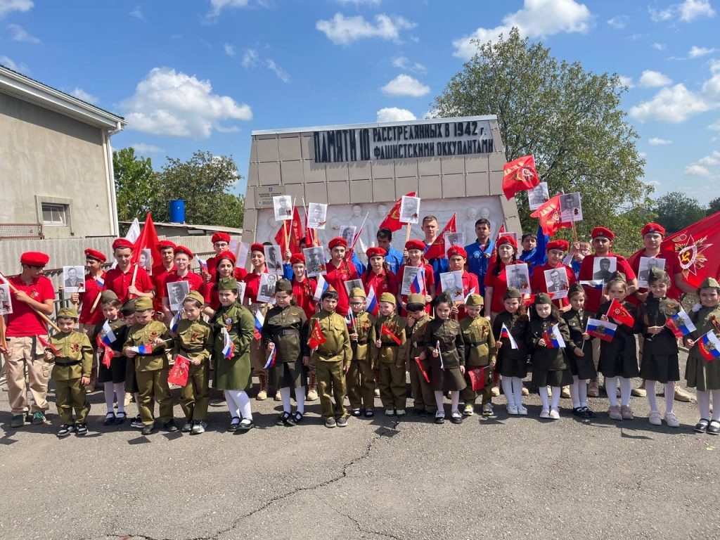 В Чалтыре прошла церемония возложения цветов к Памятнику землякам — жертвам фашизма, который установлен на Золотой горе. Проникнутое чувством глубокого уважения к истории мероприятие объединило представителей разных поколений. Воспитанники детского сада “Улыбка” вместе со своими наставниками в колонне “Бессмертного полка” прошли по улицам до монумента, неся в руках портреты своих предков — героев войны. К ним присоединились добровольцы движения “Волонтеры Победы” Мясниковского района, члены юнармейского отряда Чалтырской средней школы № 11, а также родители, разделяющие общую скорбь. Волонтеры Победы организовали акцию “Георгиевская ленточка”. Мероприятие стало данью уважения героизму и стойкости земляков, павших в борьбе с фашизмом, и важным событием в патриотическом воспитании молодого поколения.
