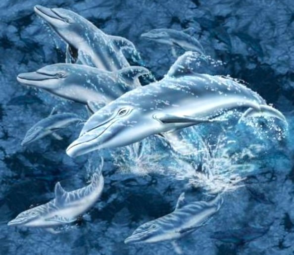 Перед вами море с дельфинами. На первый взгляд кажется, что их здесь только 8.