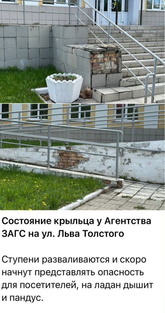 В Агентстве ЗАГС сообщили о планируемом ремонте крыльца ЗАГСа на улице Льва Толстого