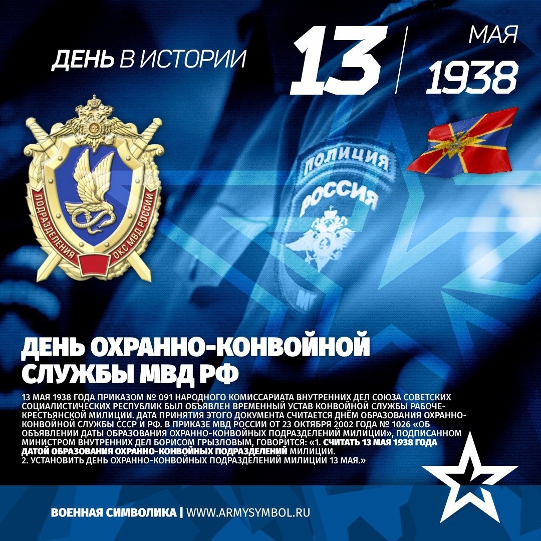 День охранно-конвойной службы МВД Профессиональный праздник работников охранно-конвойной службы Министерства внутренних дел Российской Федерации Изоляторы временного содержания, в которых несут охранно-караульную службу десятки тысяч сотрудников, действуют более чем в двух тысячах подразделений МВД РФ. История конвойной службы началась в 1886 году, когда Александр III издал предписание о создании в Российской империи конвойных команд. Двадцать лет спустя, 10 июня 1907 года был утверждён первый Устав конвойной службы. 13 мая 1938 года приказом № 091 Народного комиссариата внутренних дел Союза Советских Социалистических Республик был объявлен Временный устав конвойной службы рабоче-крестьянской милиции. Дата принятия этого документа считается днём образования охранно-конвойной службы СССР и РФ. В приказе МВД России от 23 октября 2002 года № 1026 «Об объявлении даты образования охранно-к Показать полностью... Подпишитесь на наши группы ВКонтакте и в Одноклассниках - читайте, смотрите и