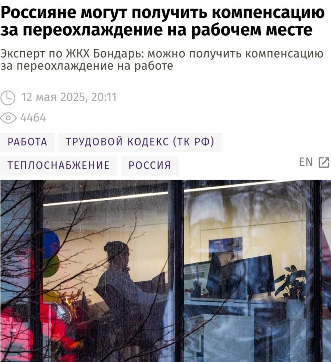 ⚡️ Сотрудник, который простудился на работе, имеет право потребовать компенсацию — заявляют эксперты по ЖКХ