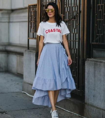 Белая футболка + яркая юбка — два мгновенных шага к свежему образу