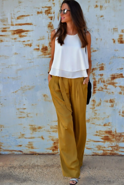 Привет, красотки! С тобой — твоя модная подруга, и сегодня у нас шикарная тема: как носить брюки-палаццо летом, чтобы они давали ощущение свободы, а не добавляли килограммы. Эти широкие штанины могут стать лучшими друзьями фигуры, если правильно подобрать ткань, вершинку и обувь. Давай разберёмся вместе за чашкой ледяного матча. Летом хочется воздуха вокруг ног, и палаццо дарят именно это: они не липнут, не сковывают шаг, а красиво струятся при каждом движении. За счёт вертикали складок и свободного кроя ноги визуально удлиняются, но только если мы не «перегружаем» их объёмом сверху и выбираем правильную посадку. Запоминаем главное правило: чем шире низ, тем легче и короче должен быть верх. Первая ловушка, в которую можно попасть, — плотный полиэстер, маскирующийся под лен. Он держит форму, но жарит так, что чувствуешь себя в сауне. Летом ищем натуральные или близкие к ним материалы: прохладную вискозу, настоящий лен с добавкой хлопка, тонкий лиоцелл, мягкий крэш-шелк. Такая ткань дыши