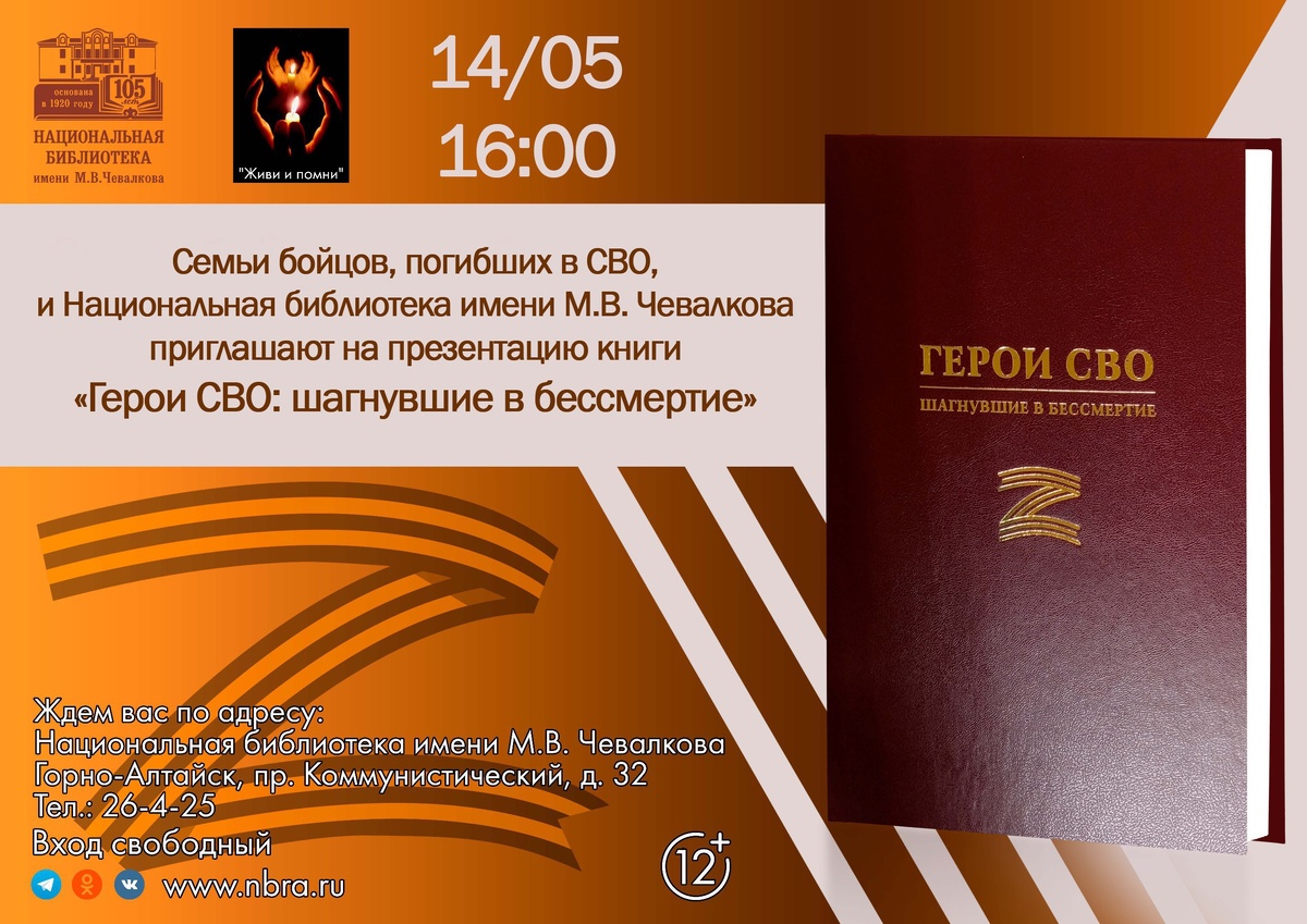 14 мая Национальная библиотека имени М.В. Чевалкова приглашает всех на презентацию книги «Герои СВО: шагнувшие в бессмертие».