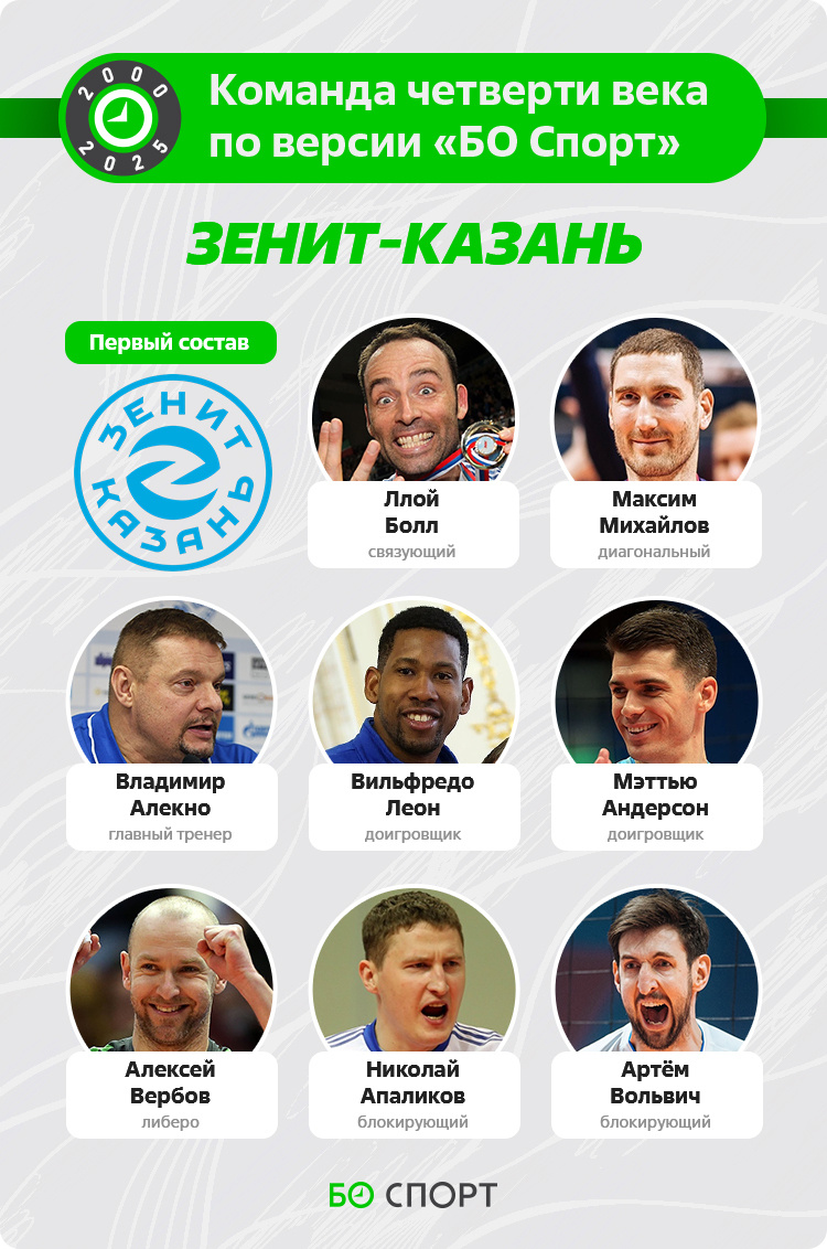 Сегодня казанский «Зенит» отмечает 25-летний юбилей. И это отличный повод продолжить представление символических сборных клубов суперлиги за четверть века. Казанский клуб за этот срок добился колоссальных успехов, завоевав 42 трофея. Несколько лет зенитовцы доминировали не только в российском, но и европейском волейболе.