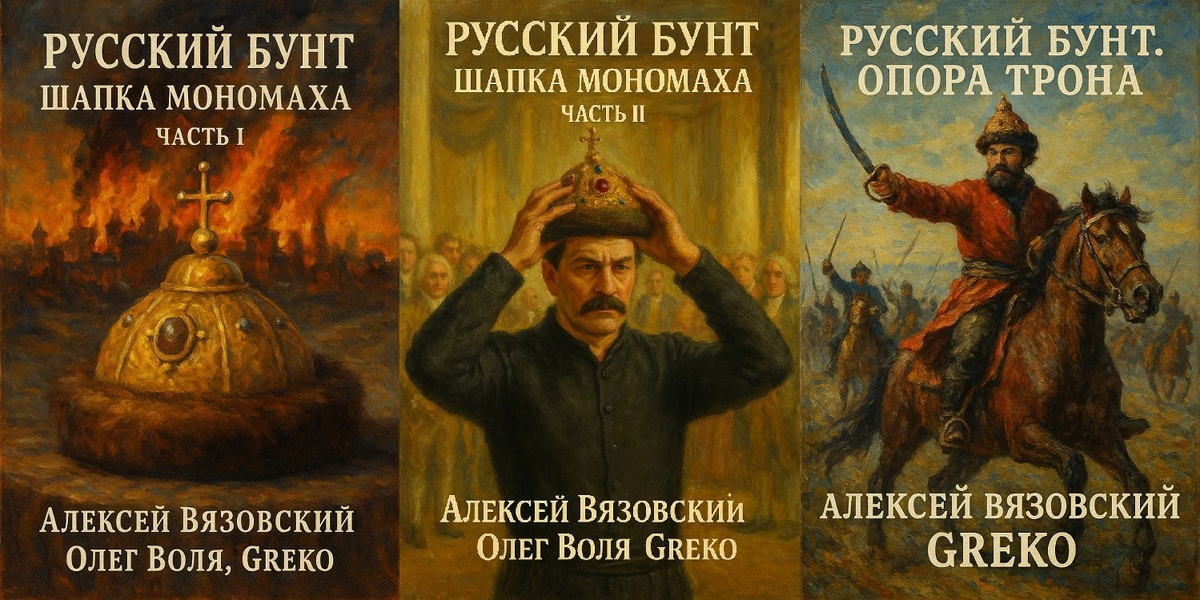 Алексей Вязовский после долгого перерыва возобновил свою попаданческую серию “Русский бунт” с новым соавтором Greko. И не просто возобновил, но переписал 4-ю книгу цикла, плюс сразу продолжил серию 5-м томом. Признаться, подобного я еще не встречал и немедленно захотел ознакомиться с результатом. Что нам дало привлечение свежей крови в проект? Одно уже бесспорно: не только вдвое вырос объем (вместо “Шапки Мономаха” в одном томе имеем ту же “Шапку Мономаха” в двух томах с немалым количеством новых героев и сюжетов), но и забрезжил свет в конце туннеля с точки зрения первоначальной авторской задумки.
