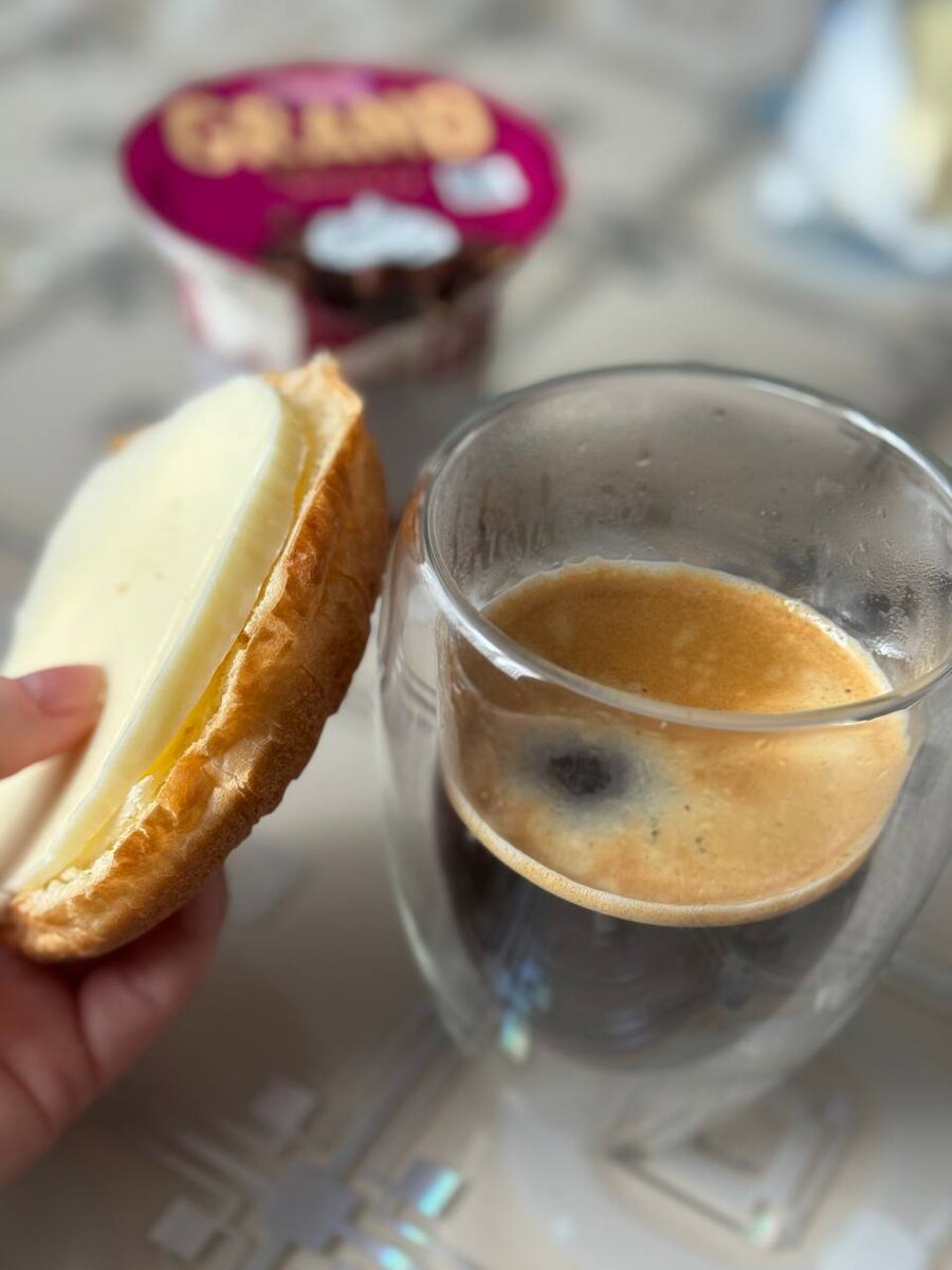 Good morning 🌅 Сегодня максимально не полезный завтрак, но это то что сегодня захотелось. Пудинг может еще отложу на потом … Но вот ☕️ кофе и сыр с маслом 🧈 😋 ммм. Всем отличного дня и прекрасного настроения. Как думаете , на что я решилась с волосами ?)