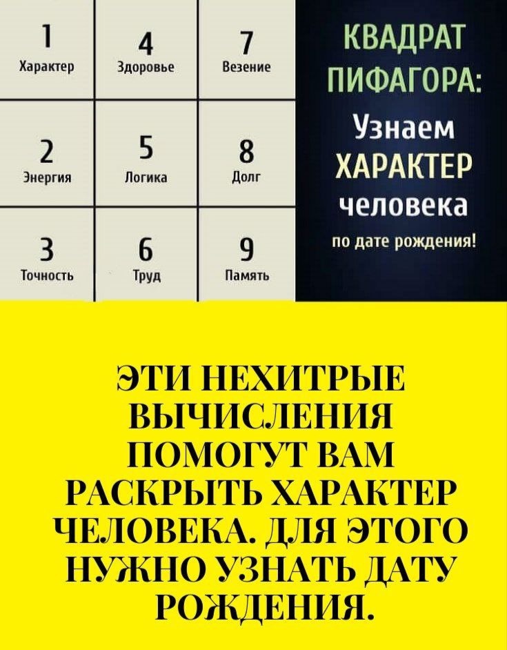 ⚡️Квадрат Пифагора- это метод использует дату рождения человека для расчета ряда чисел, которые затем располагаются в специальной таблице