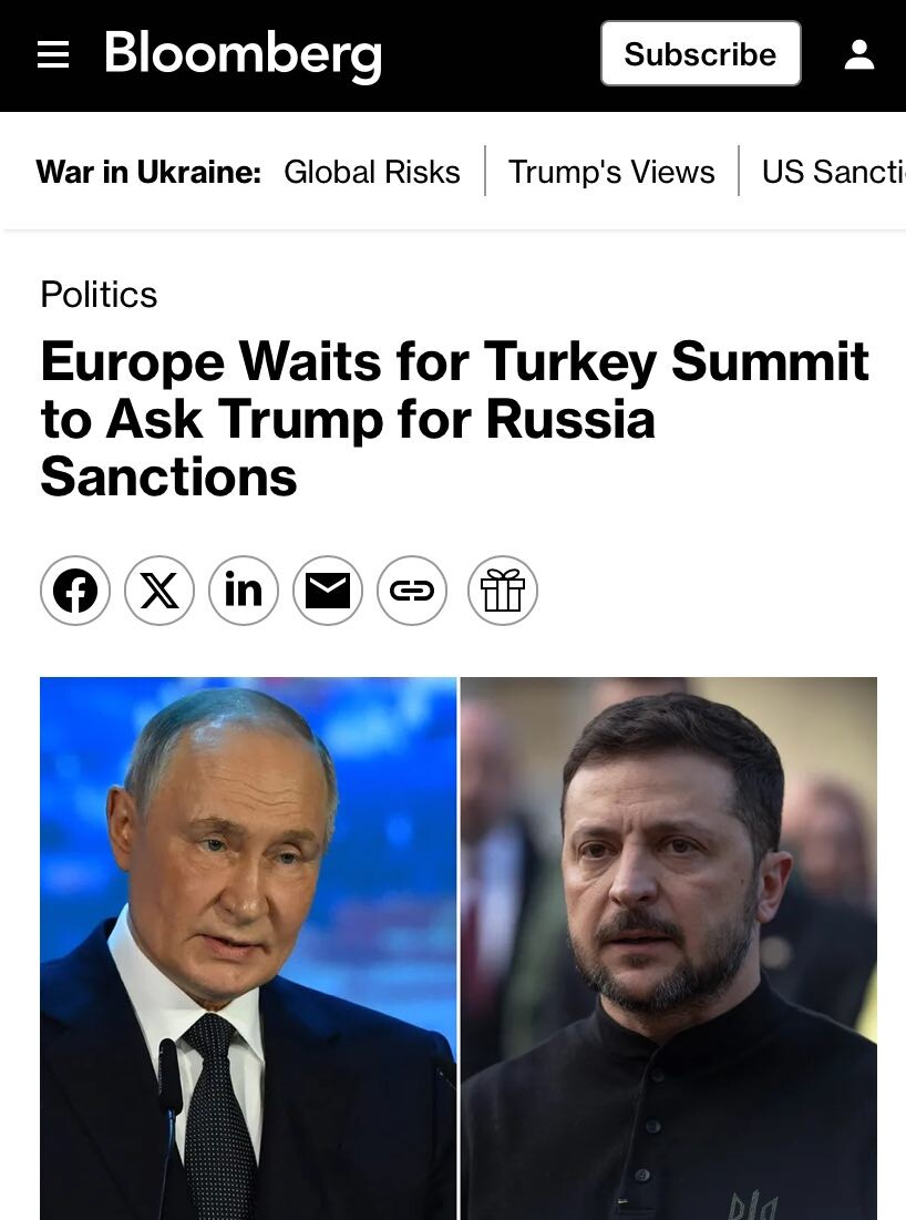 ЕС ЖДЁТ ПЕРЕГОВОРОВ В ТУРЦИИ, ПЕРЕД ТЕМ КАК НАСТАИВАТЬ НА ВВЕДЕНИИ АНТИРОССИЙСКИХ САНКЦИЙ