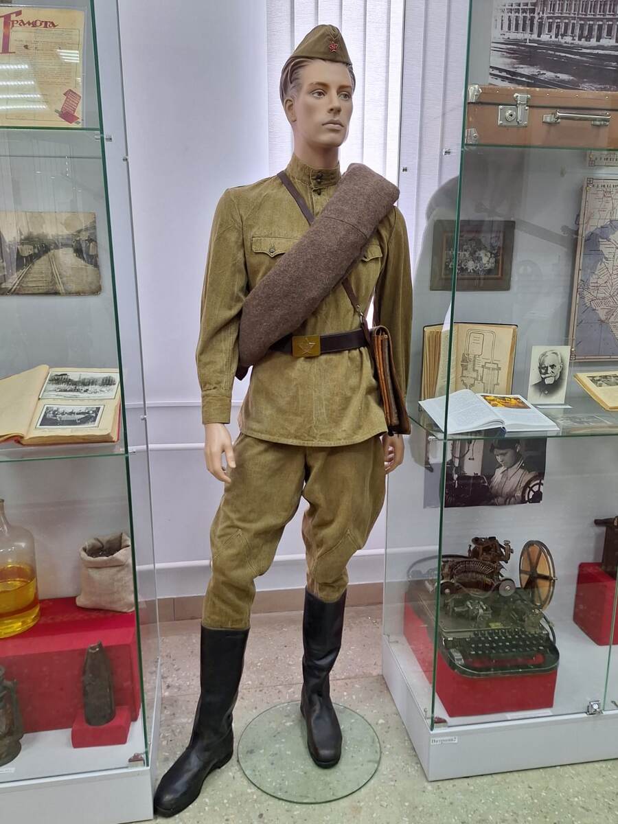 Все было перечеркнуто в одночасье — 22 июня 1941 года, в день навсегда разделивший жизни на «до» и «после». В экспозиции вы можете увидеть красноармейца в военной форме тех лет — так были обмундированы мобилизованные в пехоту бойцы и добровольцы в самом начале войны. Более 10 тысяч жителей нашего города ушли на фронт и 6266 из них не вернулись с полей сражений… Вдумайтесь — только четверо из каждых десяти ушедших смогли вернуться к своим семьям.