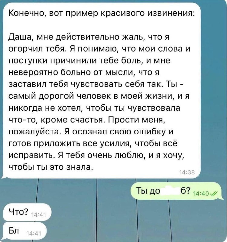 Парень попросил нейросеть придумать извинение для своей девушки, но забыл удалить одну строчку.