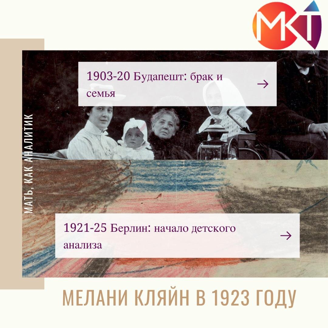 1.2. Мелани Кляйн в 1923 году: хрупкость и прорыв #историческийфонМК@kleingroup 🌪 Берлин, 1923. Мелани Кляйн 41 год. Развод с Артуром Кляйном (1922) оставил её с тремя детьми. Младший Эрих рядом, Мелитта учится в Будапеште, Ханс — в интернате. Переехав в 1921 году из Ружомберока, она сначала живёт в пансионе в Грюнвальде, затем на Куноштрассе. Её путь — не триумф, а борьба: материнство, наука и поиск себя в мире, где женский голос в психоанализе звучит тихо. 🧭 Берлин — сердце психоанализа. В 1920 году открылась первая психоаналитическая клиника. Берлинское общество, ведомое Карлом Абрахамом и Максом Эйтингтоном, — лаборатория идей. Обучение строгое: личный анализ, супервизия, практика. Кляйн, вступив в общество в 1922 году, учится у Абрахама. Но её собственный анализ не завершён: работа с Ференци (1914–1919) была лишь началом, а с Абрахамом она начнёт только в 1924. Эта незавершённость — трещина в её душе и работе. 👩👧👦 Анализ собственных детей. Кляйн делает смелый шаг: анали