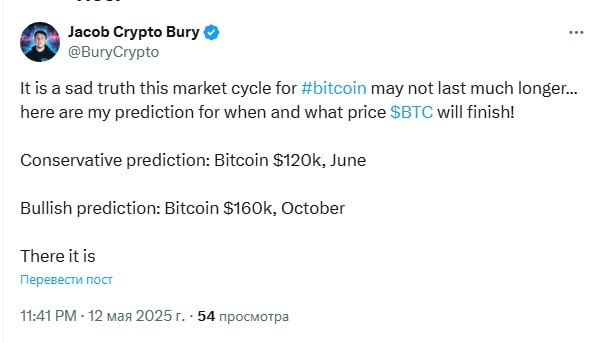 Консервативный прогноз: Биткоин $120 тыс., июнь