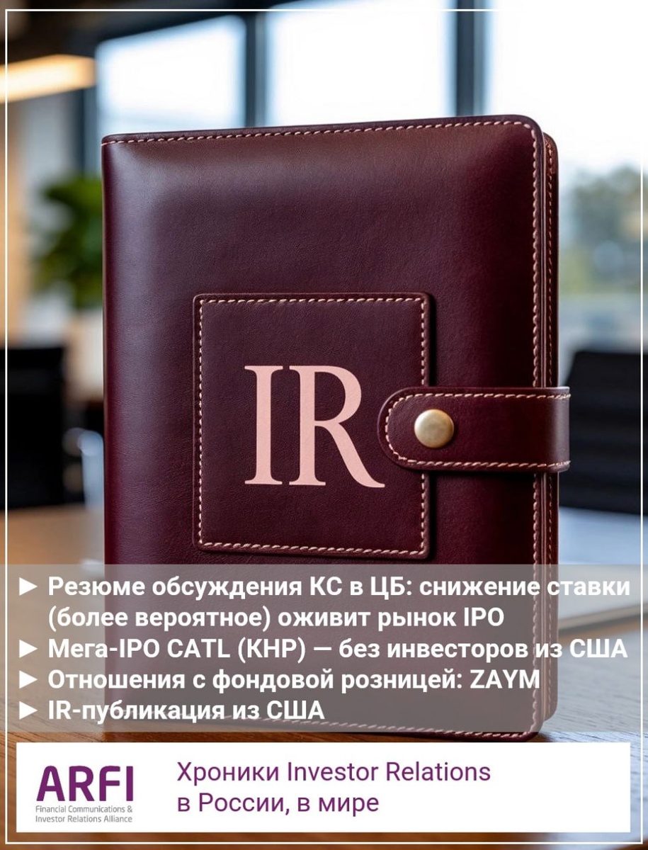 Утренний IR-дайджест 13.05.2025 Формирование условий для новой волны IPO (снижения КС) "+" ► Хотя вероятность повышения ключевой ставки сохраняется, она снизилась по сравнению с мартом. Пик перегрева экономики был пройден в 4 кв 2024 года. (ЦБ РФ, резюме обсуждения ключевой ставки) IPO у соседей: Китай ► Contemporary Amperex Technology Co. Ltd. [CATL] (КНР) — китайский (крупнейший в мире) производитель аккумуляторов планирует привлечь около $4 млрд в ходе предстоящего IPO на Гонконгской фондовой бирже. С учётом возможного увеличения объёма размещения сумма может достичь $5,3 млрд (450,5 млрд руб.). Может стать крупнейшим листингом с начала 2025 года. • Около 20 ключевых инвесторов, включая Sinopec и Kuwait Investment Authority, уже согласились купить бумаги компании на сумму около $2,6 млрд. Привлеченные средства CATL направят на расширение деятельности за рубежом. • CATL ограничат участие некоторых американских инвесторов в своём IPO, из-за растущих торговых и политических трений