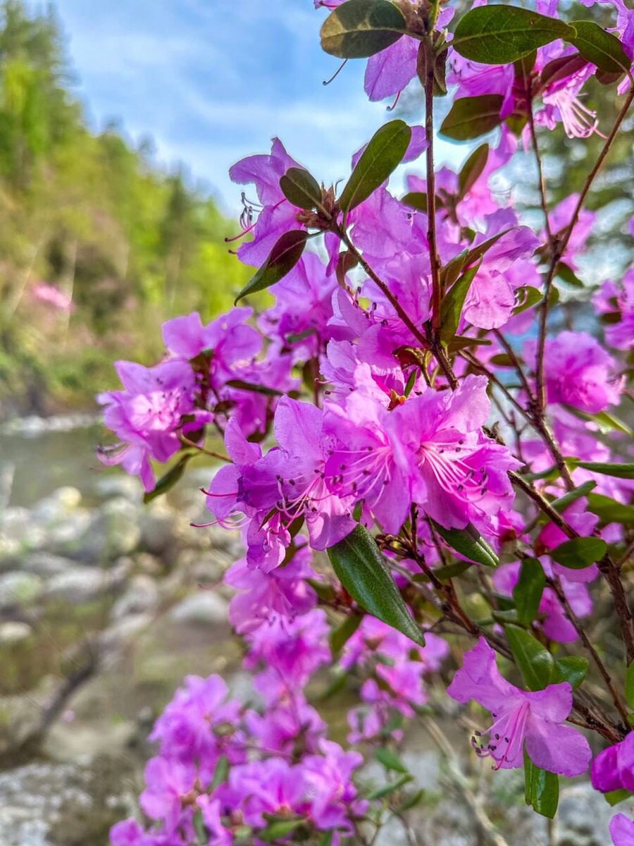Рододендровое великолепие Алтайского заповедника На суровых скалистых берегах Золотого озера не увидеть сплошного лилового ковра из распустившихся цветков маральника, как в других местах Горного Алтая, но даже отдельные кусты рододендрона даурского радуют глаз и провозглашают наступление весны. Скоро «алтайская сакура» уступит место другим цветам, а пока в ожидании скорого прихода лета любуемся прошедшими моментами весны. 📸 Роман Воробьёв, Татьяна Клименко. 🌎 Подписывайтесь на «Мою Планету»