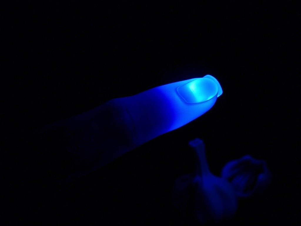 Дело в том, что при повреждении клеток чеснока высвобождается аллицин — соединение, которое реагирует с кожными белками, образуя светящиеся молекулы.