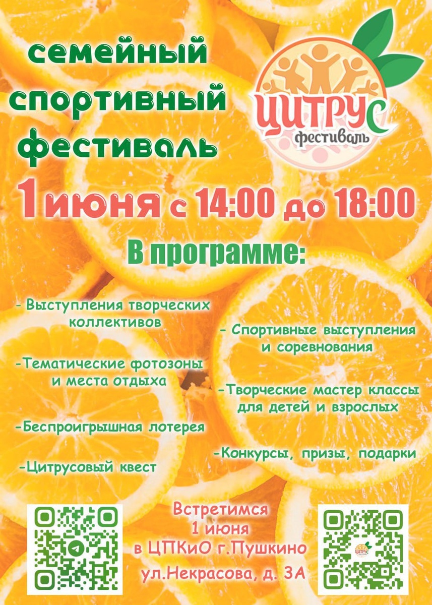 😎1 июня в Центральном парке культуры и отдыха г. Пушкино пройдёт семейный спортивный фестиваль «Цитрус» ⭐️На своей площадке фестиваль соберет более 2 500 жителей и гостей округа, более 50 представителей творческих, спортивных, культурных и бьюти сообществ округа, более 20 местных и областных информационных партнеров, а также представителей местного и областного правительства. ▶️Как это было в прошлом году, вы можете посмотреть в нашем сюжете - Фестиваль ЦИТРУС 2024 #будьвкурсе #афишагоПушкинский #ЦИТРУС