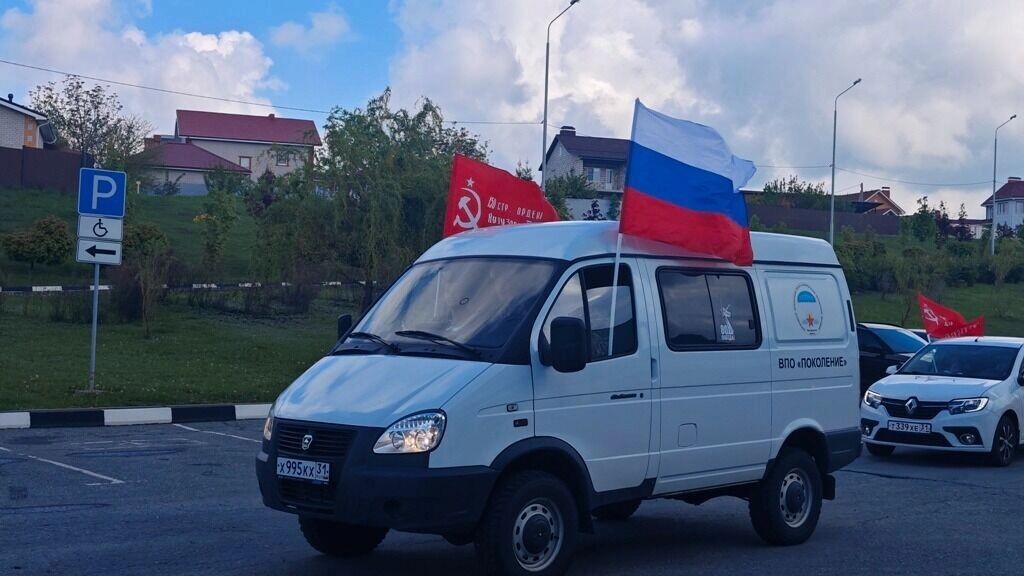 Знамёна Победы и флаги России — на автомобилях участников автопробега. Организаторы предоставили всё необходимое, чтобы оборудовать машину. Впереди — возложение цветов к каждой братской могиле в Губкинском округе.