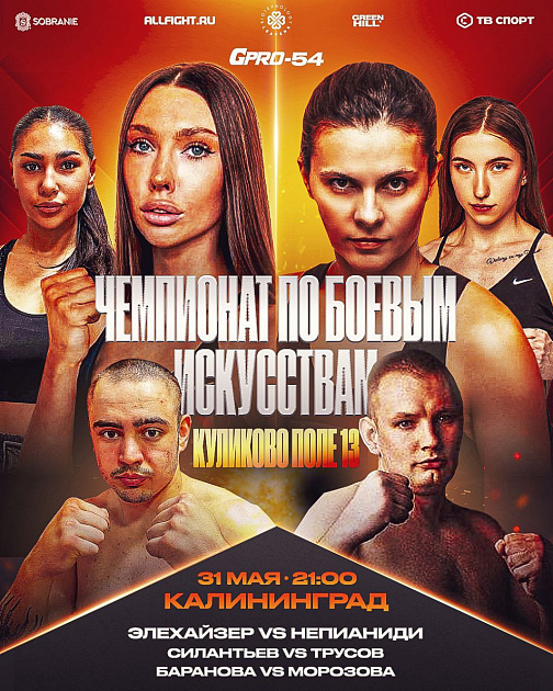 Финалистка Чемпионата России, Чемпионка Кубка России Анталия Элехайзер из Москвы бросила вызов знаменитой, не знающей поражений (5-0-0), двукратной Чемпионке Мира по тайскому боксу Анастасии Непианиди из Калининграда. Этот бой между двумя мастерами разных стилей в весовой категории 63,5 кг состоится в казино SOBRANIE в 21:00 по местному времени (22:00 по МСК)
