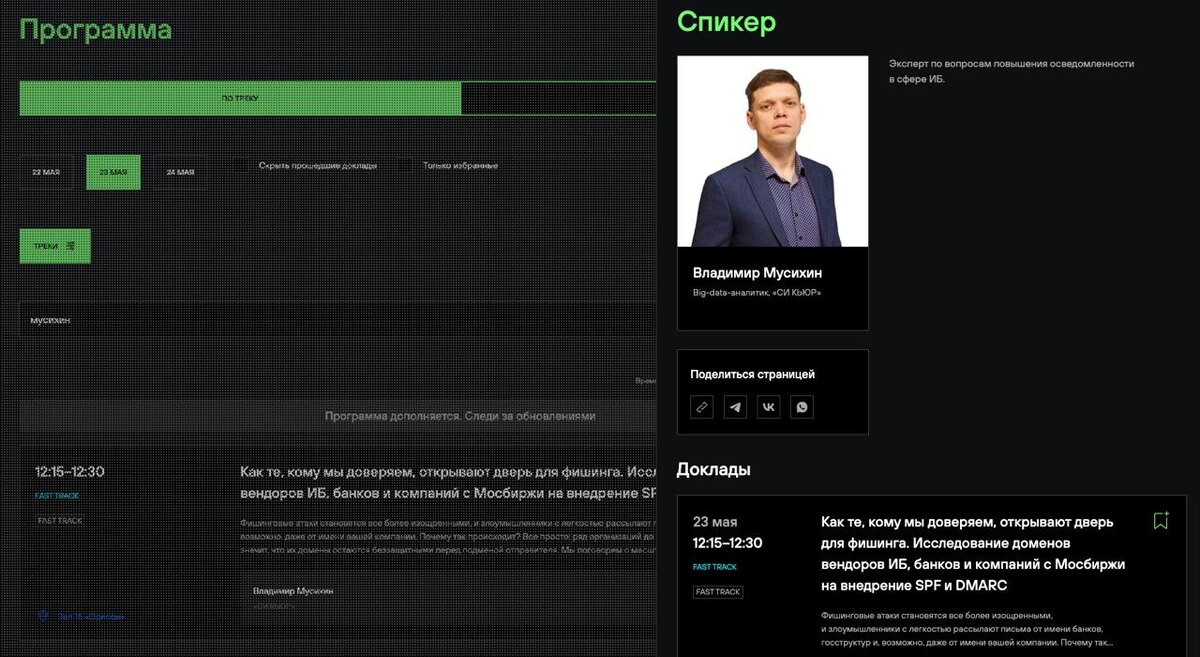 Из интересных докладов на PHD25 отметил для себя тему противодействия фишинговым атакам от коллег из СИ КЬЮР aka StopPhish. Море лайфхаков гарантируется.