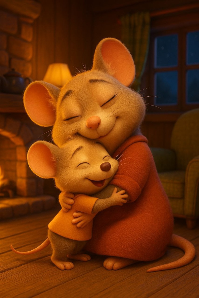 Мышонок и Мамина Звезда Каждый вечер, когда небо становилось тёмно-синим, а на нём загорались звёзды, маленький Мышонок выглядывал в окно своего домика под корнями старого дуба. Он внимательно вглядывался в небо, пока не находил одну, самую яркую звёздочку. — Вот она, — шептал он. — Мамина Звезда. Каждую ночь он любовался ею и мечтал. Однажды Мышонок вздохнул: — Я подарю эту звезду маме! Она будет самой счастливой на свете! Он попробовал взобраться по дереву. Прыг-прыг… скользко. Не достать. Попробовал залезть на забор. Цап-царап! Ай-ай! Всё равно высоко. Потом он залез на самый верх стога сена. Там он раскинул лапки и потянулся к небу… Но звезда всё равно сияла далеко-далеко. — Как же мне достать её? — грустно прошептал он. И тут в небе появилась Луна. Она светила мягко и тихо, как ночная песенка. — Луна! Луна! — позвал Мышонок. — Помоги мне достать звезду! — Зачем тебе звезда, Мышонок? — удивилась Луна. — Я хочу подарить её маме. Чтобы она знала, как я её люблю. Луна не