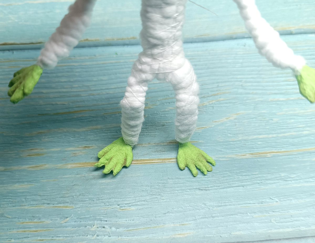 Ватная игрушка "Кикимора", часть 2. Как сделать стопы и кисти рук