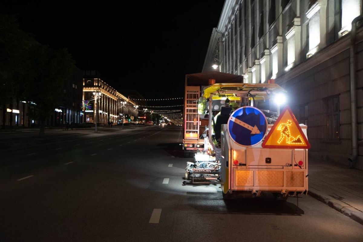 Срок гарантии разметки — 1 год. Работы специально проводят ночью, чтобы не мешать работе транспорта днём.