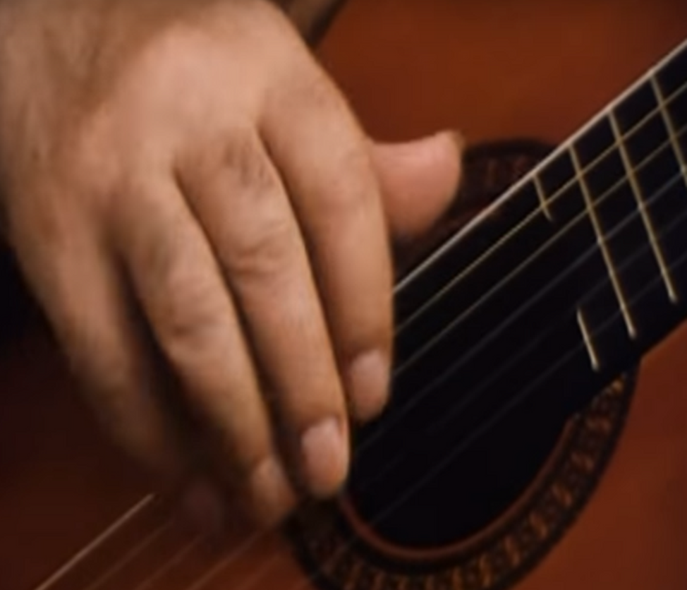 У Сеговии, очевидно, линия первых (то есть пястно-фаланговых) суставов не параллельна струнам. Сустав указательного пальца ближе к струнам, чем сустав безымянного. Благодаря этому плоскость ногтевой пластинки находится под углом к струнам и в звукоизвлечении участвует левый (ближний к большому пальцу) край ногтя. Если бы линия первых суставов была расположена параллельно струнам, как того требует Пухоль, в звукоизвлечении участвовали бы сразу оба края ногтя, точнее, то один, то другой край - как повезет. Это бы делало звук менее управляемым. Рекомендация Пухоля держать линию первых суставов параллельно линии струн годится только для безногтевого способа звукоизвлечения. Впрочем, сам Пухоль писал: