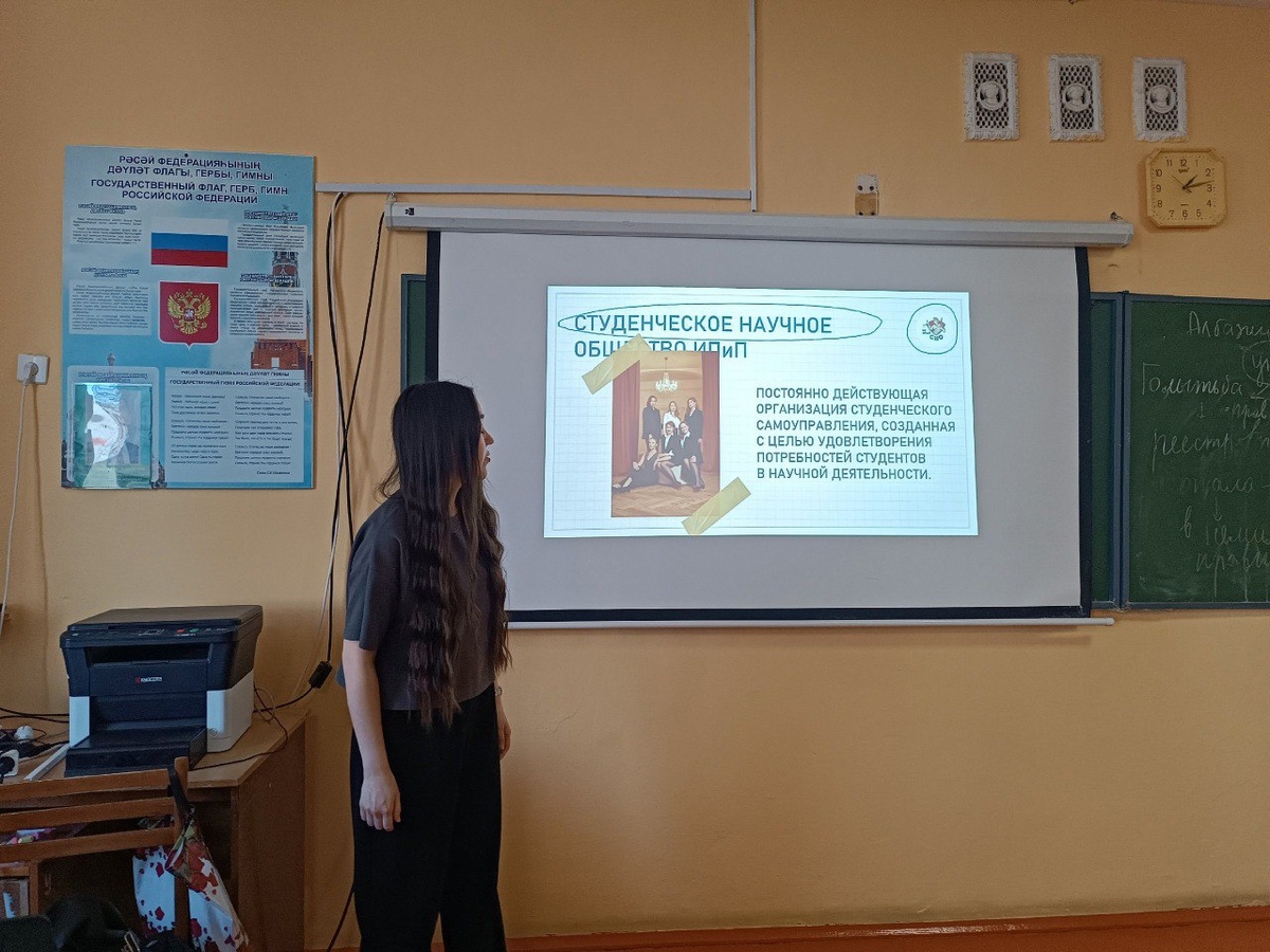 📚 Студентка 1 курса Института права и предпринимательства Юлиана Сафаргалина посетила свою родную МБОУ Башкирскую гимназию (Республика
