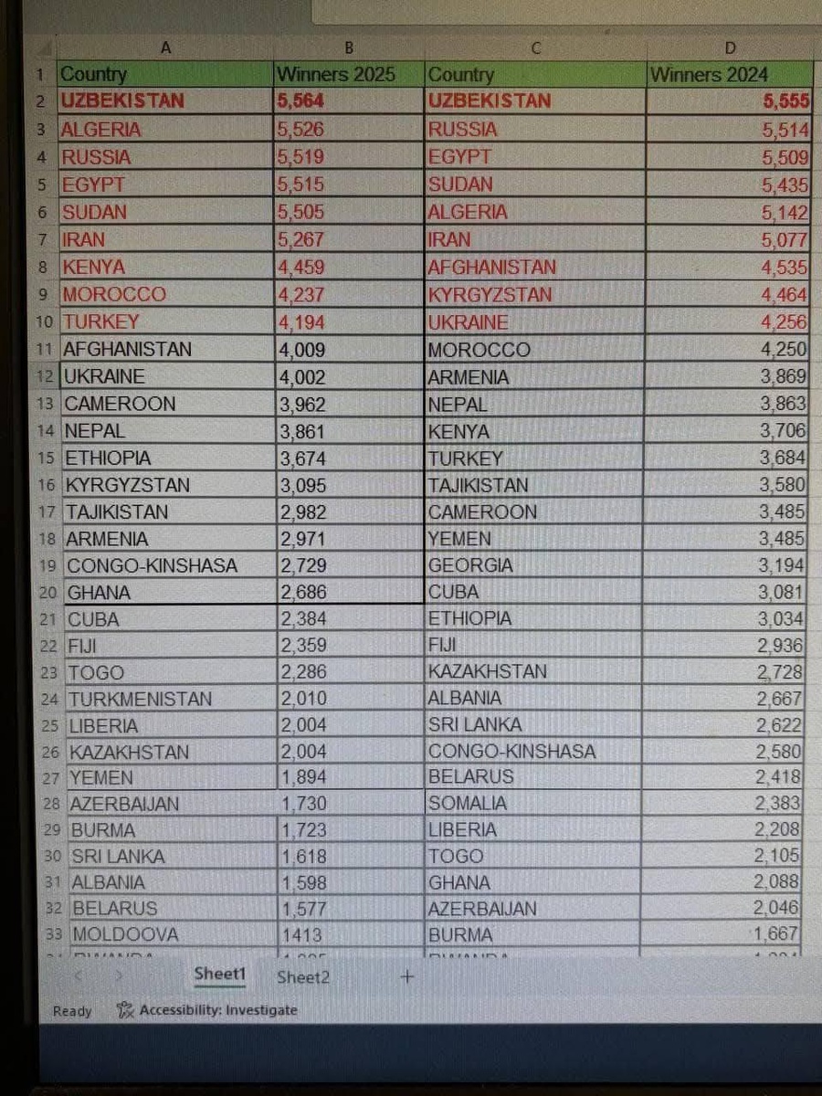 Green Card–2025: Энг кўп ютуқни ўзбекистонликлар қўлга киритди