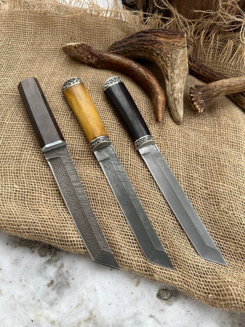 Когда речь заходит о красивом и при этом прочном ноже, большинство сразу вспоминает дамасскую сталь. Но для меня это не просто узор на клинке — это результат точной работы с четырьмя сталями, температурой, кислотами и временем. В этой статье я расскажу, как я сам изготавливаю дамаск, какие материалы использую, и почему это не просто технология, а настоящее ремесло. Что такое дамасская сталь — по-настоящему В отличие от штампованных «узорчатых» ножей с лазерной гравировкой, настоящая дамасская сталь создаётся ковкой и сваркой слоёв различных сталей. Это не декоративный элемент, а функциональный многослойный материал, сочетающий в себе: Мой дамаск — это не закупленные слитки, а ручная варка в кузнице. Какие стали я использую в своем дамаске Я комбинирую четыре проверенные стали: Такой состав даёт нужный баланс между твердостью, прочностью и гибкостью. В процессе ковки я чередую эти стали, создаю пакеты, свариваю, перекручиваю, складываю и снова варю — до 300–400 слоев в одном клинке. Как