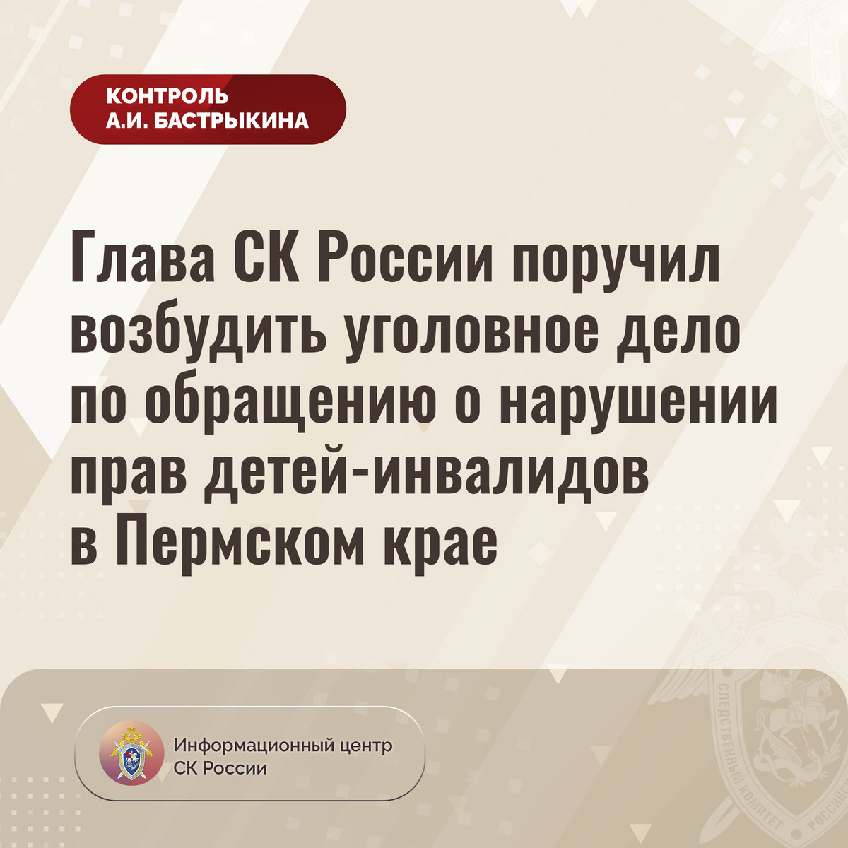 Глава СК России поручил возбудить уголовное дело по обращению о нарушении прав детей-инвалидов в Пермском крае