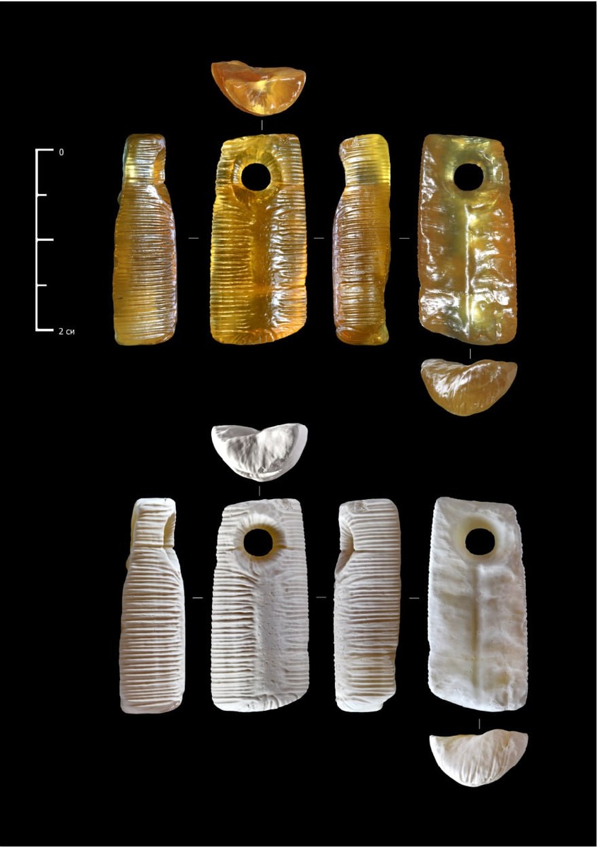 1950-е: Первые улики В Костенках, на стоянке Спицына, археологи находят древние просверленные украшения из зубов песца, камешков и четыре — из ростров белемнитов, окаменелых моллюсков мелового периода. Две подвески выделяются: их поверхность покрыта загадочными ребрами и неестественно блестит. Учёные пишут о «совершенной технике сверления», но про странный «орнамент» — ни слова. Первый след теряется. 1970–1980-е: Ложный путь Новое поколение исследователей принимает ребристую текстуру как факт и пытается разгадать: как древние мастера добились такого эффекта? Эксперименты с кислотным травлением дают блеск, но е стабильно и не повторяют загадочные бороздки. Ответа нет — только догадки. 1990–2020-е: Ошибка закрепляется В научных статьях ребра на белемнитах называют преднамеренными нарезками — мол, палеолитические ювелиры подчёркивали структуру камня. В 2016 и в 2022 выходят статьи, где гипотеза уже звучит убедительно, археологи установили последовательность событий в древности при помощ