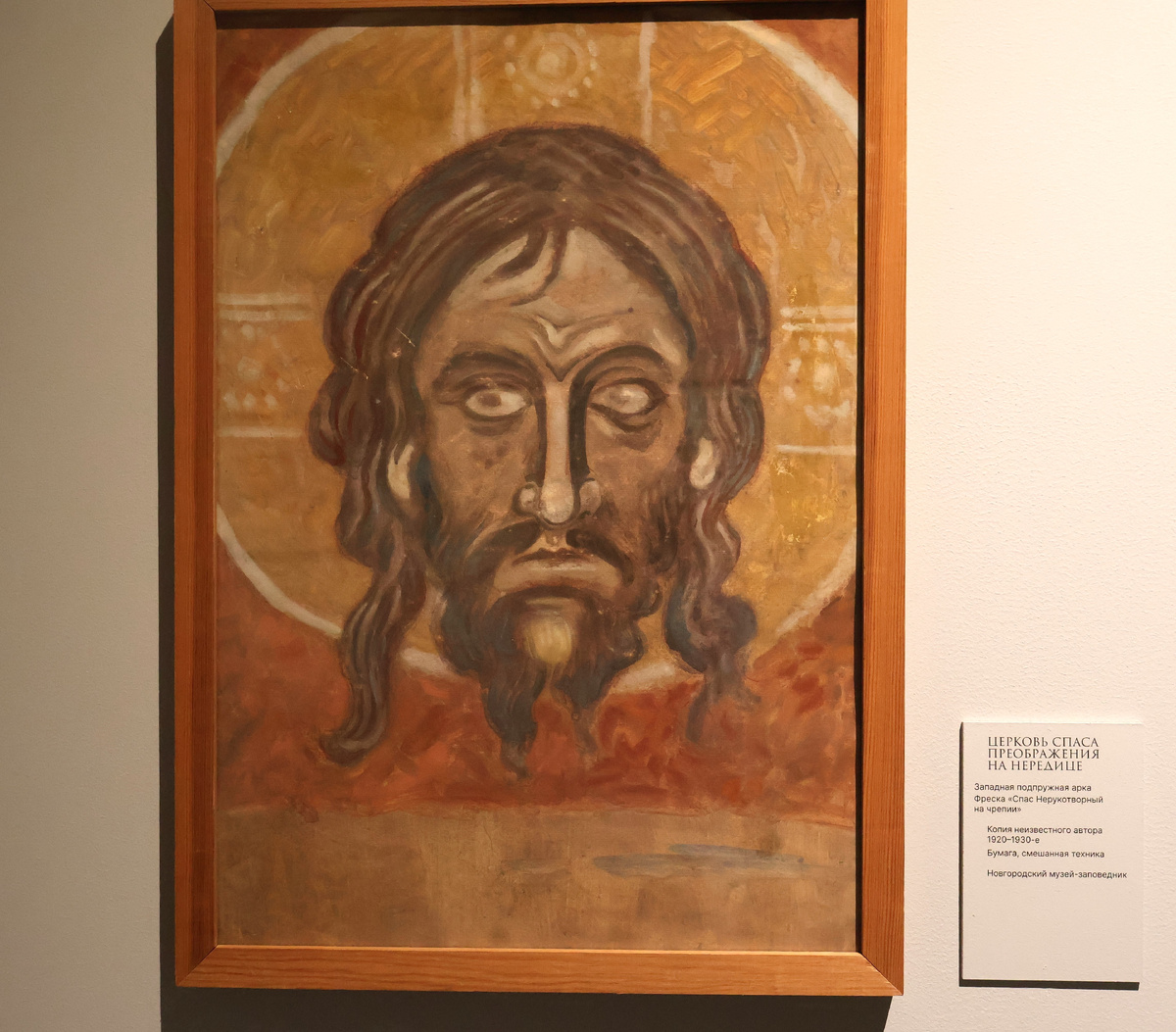 Держите для вдохновения . Фреска "Спас Нерукотворный на чрепии". Церковь Спаса Преображения на Нередице. Западная подпружная арка. Копия неизвестного автора 1920-1930. Бумага, смешанная техника. Новгородский музей-заповедник. Сфотографировала для вас в музее архитектуры им. А.В. Щусева