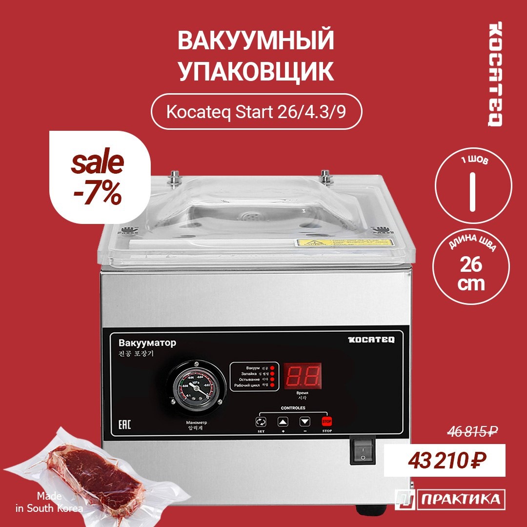 ВАКУУМНЫЕ УПАКОВЩИКИ KOCATEQ START Технологию су-вид невозможно внедрить без хорошего вакуумного упаковщика. Обратите внимание на серию KOCATEQ START. Это одношовные камерные машины с длиной шва 26 или 29.5 см. ‼️Сейчас на обе модели действуют скидки до 14% ‼️ https://pectopah.ru/catalog/upakovochnye_mashiny/vakuumnye_upakovochnye_mashiny/filter/in_stock-is-y/brand-is-kocateq/dlina_shva_sm-is-72942178-f367-11e6-989b-001cc04c34ee-or-b7bc2b86-d50f-11eb-9f86-484d7edfb9f2/sistema_podachi_gaza-is-e5e63cc4-67b4-11ec-bd20-484d7edfb9f2/apply/ ◽️pectopah.ru ◽️zakaz@pectopah.ru ◽️Whatsapp ◽️+7 (495) 921-39-86 🤓 Подписывайся на Pectopah.ru