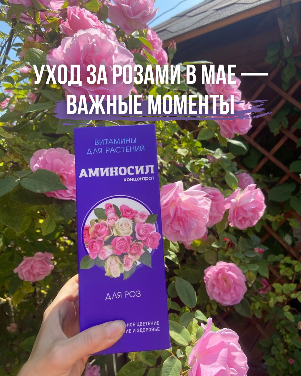 В мае розы начинают более активно расти, поэтому важно следить за влажностью почвы. Поливайте по мере подсыхания верхнего слоя земли, не заливая кусты. ✅ Подкормка. Именно в мае розы нуждаются в удобрениях: для этих целей прекрасно подойдут органические витамины АМИНОСИЛ.