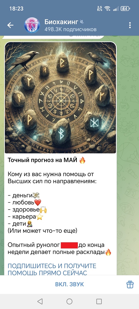 Начиналось все, как всегда, банально - с зависания в Телеграме. Ну, водится за мной такой грешок. Даже группу замазывать не буду - какая-никакая, а все реклама. Как вдруг вижу Это: В очередной раз задаюсь вопросом, когда же запретят эту назойливую рекламу. Не само современное и креативное мракобесие, а хотя бы рекламу. Очередной канал специалиста из разряда "за деньги я могу все". Подписываюсь я, значит, на канал (проклятое любопытство) этого "рунолога", а там астрологические прогнозы, расклады таро, околоэзотерические цитаты и прочее. Чтобы просто увидеть хоть какое-то упоминание о работе с рунами, листать пришлось очень долго. Далее идет "прескурант" (еще бы знать, что это такое) с вот таким разбросом цен. Чтоб я так жил! И неужели находятся люди, которые добровольно отваливают такие суммы за снятие порой даже несуществующей порчи? Тут, бывает, за 3000-5000 торгуются как на базаре, вообще не платят (зато потом становятся моим контентом) и ни о каких 30000-50000 и речи быть не может