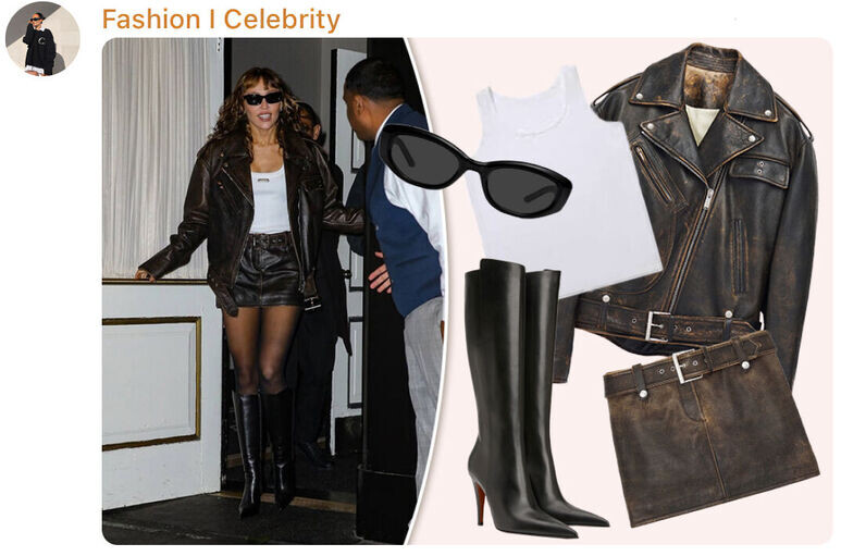 Даже те модницы, которые любят сочетать несочетаемое, комбинировать в одном образе кучу цветов и «играть» с аксессуарами, признают факт, что максимально простые аутфиты порой выглядит шикарно! Вот и нас певица и актриса Майли Сайрус убедила добавить в гардеробы несколько крутых, но все же удобных вещей. Фишкой наряда, который звезда выгуляла на фан-показе своего визуального альбома «Something Beautiful» от Spotify в Нью-Йорке, стал костюм от Alexander McQueen из темно-коричневой кожи: байкерская куртка оверсайз и мини-юбка с поясом, стилизованные под винтаж. Белая майка-алкоголичка, украшенная логотипом McQueen, солнцезащитные очки классической формы и черные остроносые сапоги до колена на небольшом каблуке не перетягивали внимание на себя. Макияж по этой же причине тоже был нюдовым. На первый взгляд это образ, который легко повторить! Попробуем? Начнем с простого. И дорогого. Майку Alexander McQueen придется заказывать через байеров — ее стоимость $350 (чуть больше 28 000 руб.). Как