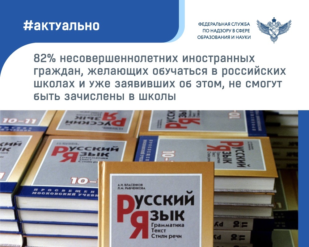 Рособрнадзор провел мониторинг и подвел первые итоги тестирования по русскому языку для несовершеннолетних иностранных граждан и лиц без гражданства, планирующих обучение в российских образовательных организациях. 81% детей и подростков из этих категорий отсеялись еще до самого тестирования. Тестирование на владение русским языком для несовершеннолетних иностранных граждан, планирующих продолжить обучение в российских школах, было введено с 1 апреля 2025 года. На текущий момент его проведение осуществляется в 2 356 организациях. С момента начала тестирования было подано 1 762 заявления на участие. 81 % заявителей было отказано в принятии документов. Основные причины отказов включают: предоставление неполного пакета документов, отсутствие свободных мест в образовательных организациях, а также установление недостоверных сведений в поданных документах. На процедуру тестирования допущены 335 иностранных граждан. 44 уже приняли участие в тестировании, из которых 27 чел. (61%) справились с з