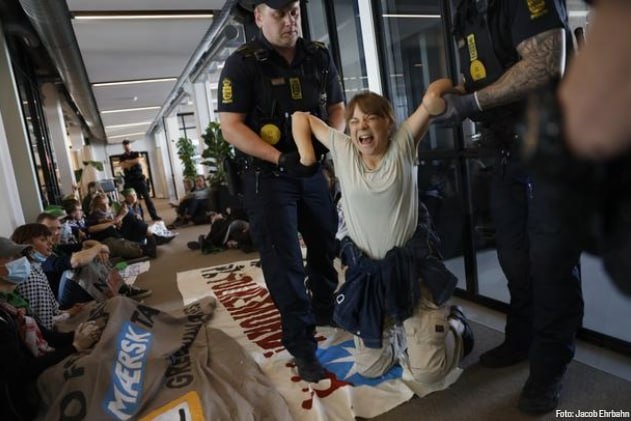 Π°ΠΊΡΠΈΠ²ΠΈΡΡΠΎΠ². Π‘ΡΠ΅Π΄ΠΈ ΡΡΠ°ΡΡΠ½ΠΈΠΊΠΎΠ² ΠΏΡΠΎΡΠ΅ΡΡΠ° Π±ΡΠ»Π° ΡΠ²Π΅Π΄ΡΠΊΠ°Ρ ΡΠΊΠΎΠ°ΠΊΡΠΈΠ²ΠΈΡΡΠΊΠ° ΠΡΠ΅ΡΠ° Π’ΡΠ½Π±Π΅ΡΠ³. ΠΠ΅ΠΌΠΎΠ½ΡΡΡΠ°Π½ΡΡ ΠΏΡΠΎΠ½ΠΈΠΊΠ»ΠΈ Π² ΠΏΠΎΠΌΠ΅ΡΠ΅Π½ΠΈΡ ΠΎΡΠΈΡΠ° Ρ ΡΠ΅Π»ΡΡ ΠΏΡΠΎΠ²Π΅Π΄Π΅Π½ΠΈΡ Π°ΠΊΡΠΈΠΈ ΠΏΡΠΎΡΠΈΠ² "ΡΠΎΠΉ ΡΠΎΠ»ΠΈ, ΡΡΠΎ Maersk ΠΈΠ³ΡΠ°Π΅Ρ Π² ΠΊΠ»ΠΈΠΌΠ°ΡΠΈΡΠ΅ΡΠΊΠΎΠΌ ΠΊΡΠΈΠ·ΠΈΡΠ΅". ΠΠ½ΡΠΎΡΠΌΠ°ΡΠΈΡ ΠΎ ΠΏΡΠΎΠ½ΠΈΠΊΠ½ΠΎΠ²Π΅Π½ΠΈΠΈ Π² ΠΎΡΠΈΡ Π°ΠΊΡΠΈΠ²ΠΈΡΡΠΎΠ² ΠΏΠΎΡΡΡΠΏΠΈΠ»ΠΎ Π² ΠΏΠΎΠ»ΠΈΡΠΈΡ ΡΡΡΠΎΠΌ. ΠΡΠΈΠ±ΡΠ²ΡΠΈΠ΅ ΡΡΡΠ°ΠΆΠΈ ΠΏΠΎΡΡΠ΄ΠΊΠ° ΠΏΡΠ΅Π΄Π»ΠΎΠΆΠΈΠ»ΠΈ ΡΡΠ°ΡΡΠ½ΠΈΠΊΠ°ΠΌ Π°ΠΊΡΠΈΠΈ Π΄ΠΎΠ±ΡΠΎΠ²ΠΎΠ»ΡΠ½ΠΎ ΠΏΠΎΠΊΠΈΠ½ΡΡΡ ΠΏΠΎΠΌΠ΅ΡΠ΅Π½ΠΈΡ Maersk Tanker. ΠΡΠΊΠ°Π·Π°Π²ΡΠΈΠ΅ΡΡ Π±ΡΠ»ΠΈ ΠΏΡΠΈΠ½ΡΠ΄ΠΈΡΠ΅Π»ΡΠ½ΠΎ Π²ΡΠ²Π΅Π΄Π΅Π½Ρ, ΠΈ ΠΏΡΠΎΡΠΈΠ² Π½ΠΈΡ