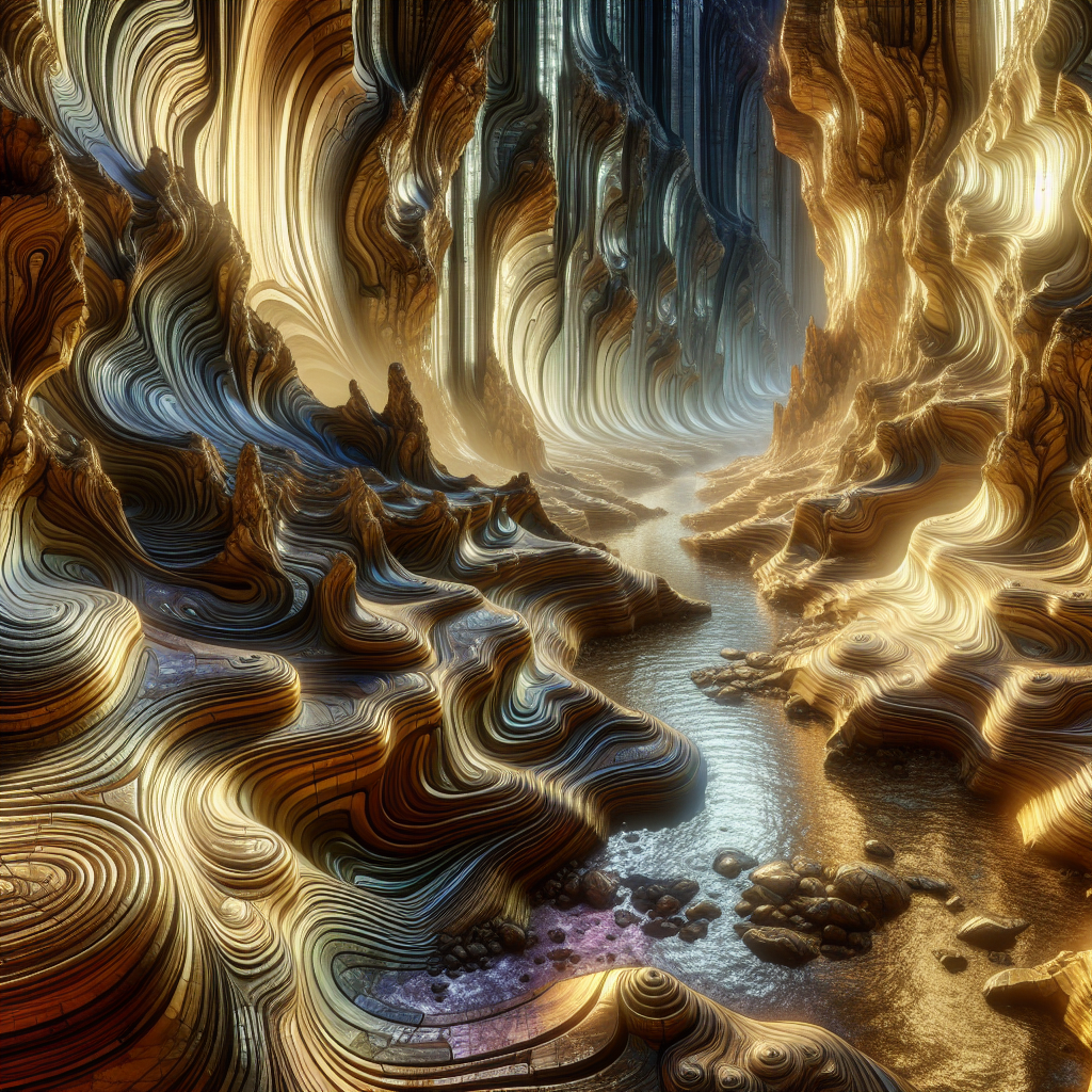 Этот каньон не прорезан рекой, а — голосом. Эхо древнего существа когда-то прошло сквозь скалы, и теперь вся структура отражает конкретные слова, произнесённые миллионы лет назад. Стены покрыты золотыми линиями вибраций, и если прикоснуться к ним — можно услышать не только звук, но и чувство, его породившее. Путники ищут здесь ту "Одну Фразу", произнеся которую, можно переписать собственную судьбу, вызвав новую музыкальную волну в камне. Воду здесь не пьют — ею разговаривают. На рассвете каждый каньон начинает петь искажённый хорал из прошлого Вселенной, как дыхание забытого титана.